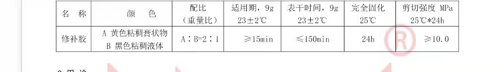2 配膠 按規(guī)定進(jìn)行配制,將膠置于潔凈、干燥、無(wú)油的容器中,混合均勻至顏色一致。配膠不宜過(guò)多,做到隨配隨用。夏季一次配膠量不應(yīng)超過(guò) 500 克。